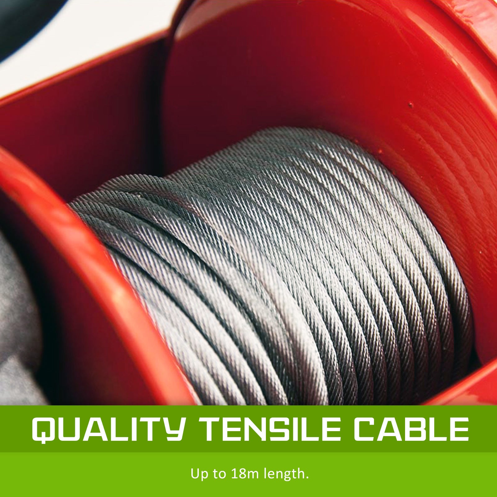The Electric Hoist is powered by a Lateral-Magnetic Single-Phase capacitance motor and fully featured compact lifting solution you've been looking for. Capable of reaching a maximum height of 18m, it carries a maximum load of 250kgs using a clever dual pulley and is powered by a 510W commercial cycle motor.